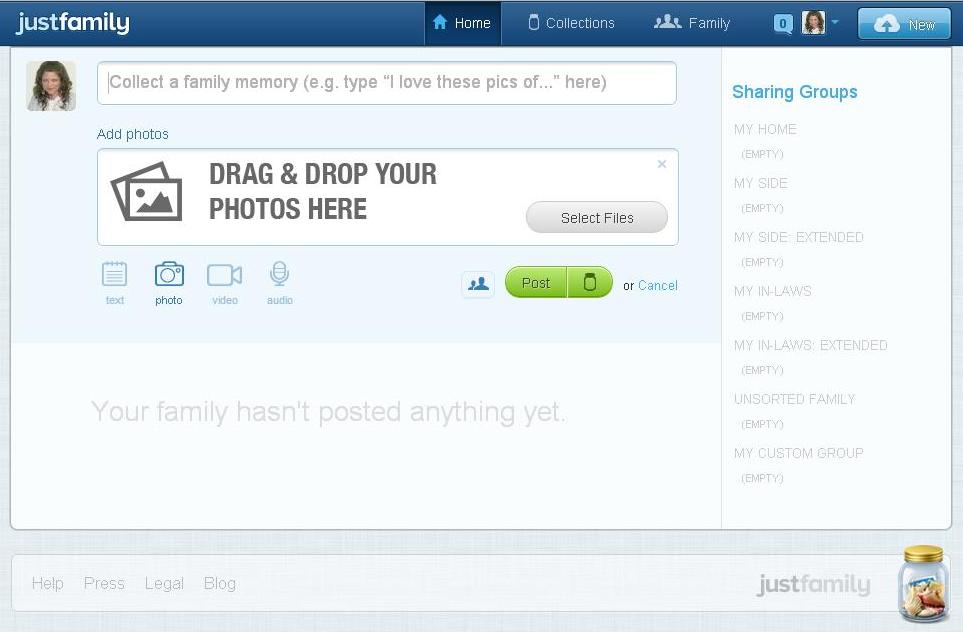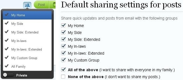 You can post anything just like on Facebook or Google+ – images, text, video – but you can also add audio files. Furthermore, you can put family members into different groups to specify who can see your updates and you can additionally choose default sharing options from the settings section.