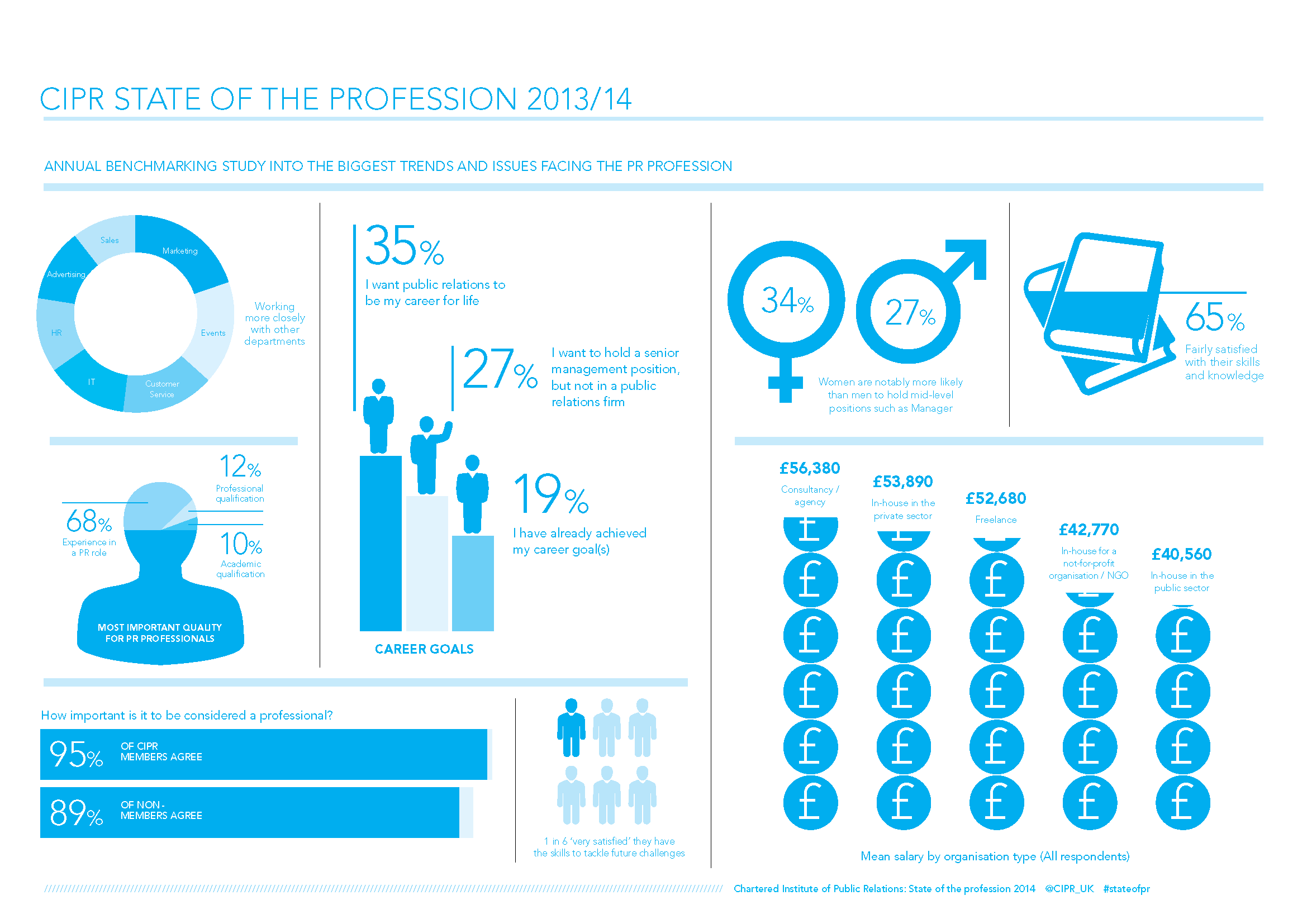 Research, research, and research again... That's what today's blog post is about again. For some reason so many relevant and interesting studies have published their findings all at once and I just can't withhold that information from you. And so today I am going to share with you my impressions from the latest 2013/2014 State of the PR Profession Annual Benchmarking Survey by the Chartered Institute for Public Relations (CIPR).