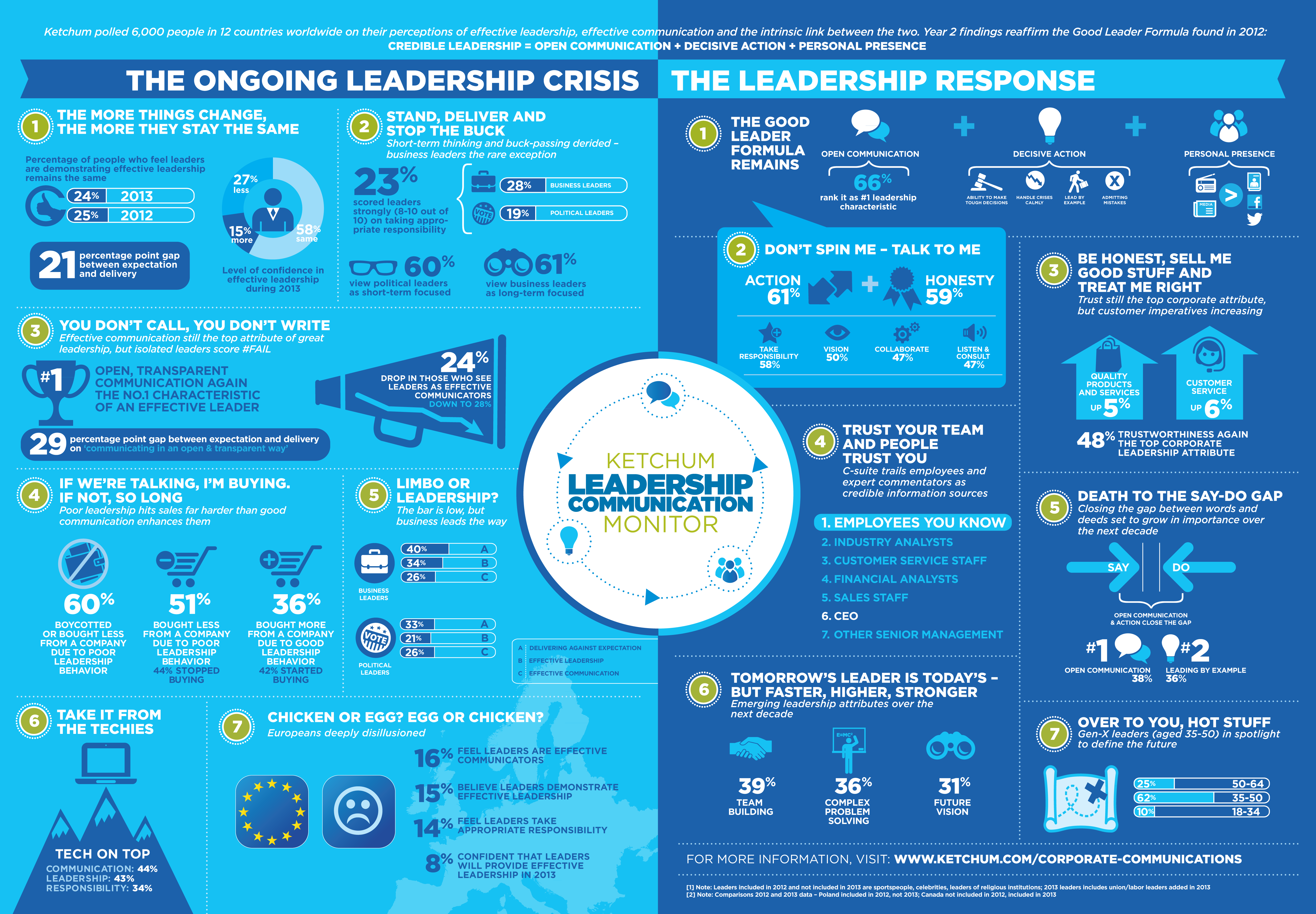 Some background first: the annual research explored the perceptions of 6,000 people in 12 countries on five continents “regarding effective leadership, effective communication and the intrinsic link between the two.”